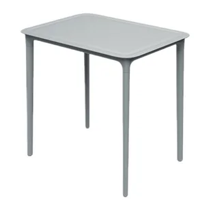 Stół ogrodowy marki FERNE. Stół z kolekcji Rimo w kolorze szarym. Użyte materiały w 100 % nadają się do recyklingu. Stół jest odporny na opady, promienie UV i wahania temperatur. Produkt cechuje się prostym kształtem, zaokrąglonymi krawędziami i prostym montażem.