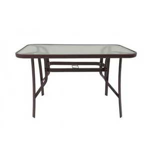 Stół idealny na wszelkiego rodzaju imprezy zarówno w domu, jak i w ogrodzie. Blat stołu wykonany z wytrzymałego szkła hartowanego na wzór falującej wody. Profile stalowe malowane proszkowo. Blat nie posiada otworu na parasol. Praktyczny stół do ogrodu lub na taras.