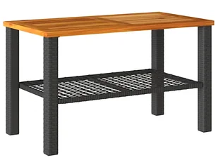 Zaproszenie do letniej elegancji Minimalistyczny, elegancki design. Solidny blat z litego drewna akacjowego. Dodatkowa półka. Wytrzymała, stalowa konstrukcja opleciona technorattanem. Odporność na zmieniające się warunki atmosferyczne.