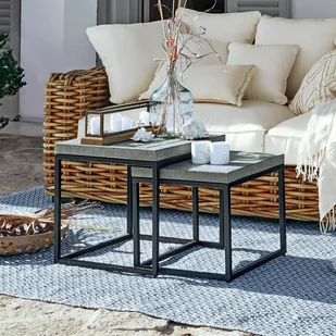 Blat wykonany jest z wytrzymałej, odpornej na warunki atmosferyczne mieszanki kamieni. Jest on osadzony na solidnej żelaznej ramie. Te stoliki pomocnicze ze sztucznego kamienia są idealnymi meblami do ogrodu i wspaniale łączą kontrastujące ze sobą style. Są zaprojektowane w taki sposób, że jeden stolik możesz wsunąć pod drugi. Design stolików pomocniczych inspiruje prostotą i zwodniczo realistycznym sztucznym kamieniem.