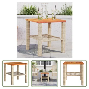 Stół ogrodowy beżowy 40x40x42 cm polirattan drewno akacjoweCiesz się filiżanką kawy przy tym stole ogrodowym lub rozmawiaj z rodziną lub przyjaciółmi w ogrodzie, na podwórku lub na patio!Trwały materiał: rattan PE, znany również jako polirattan, to wytrzymały, łatwy w pielęgnacji materiał syntetyczny o wyglądzie naturalnego rattanu. Charakteryzuje się niską wagą i jest łatwy w czyszczeniu. Ze względu na swoją trwałość i odporność na warunki atmosferyczne jest często wykorzystywany do produkcji mebli ogrodowych. Solidny i łatwy w pielęgnacji blat: