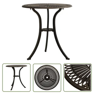 Ciesz się pyszną popołudniową herbatą lub filiżanką kawy na świeżym powietrzu z rodziną i przyjaciółmi przy tym stole ogrodowym! Stół wykonany jest z odlewu aluminiowego, dzięki czemu jest solidny, wytrzymały i idealny do codziennego użytku na zewnątrz. Blat stołu ma piękny wzór i zapewnia idealne miejsce na napoje, przekąski i inne niezbędne rzeczy. Trzy nogi zapewniają niezawodne użytkowanie. Ponadto ten stolik tarasowy ma otwór na parasol, który doskonale pomieści parasol, chroniąc przed słońcem lub deszczem. Kolor: brązowyMateriał: