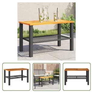 Stół ogrodowy czarny 70x38x42 cm polirattan drewno akacjoweCiesz się filiżanką kawy przy tym stole ogrodowym lub rozmawiaj z rodziną lub przyjaciółmi w ogrodzie, na podwórku lub na patio!Trwały materiał: rattan PE, znany również jako polirattan, to wytrzymały, łatwy w pielęgnacji materiał syntetyczny o wyglądzie naturalnego rattanu. Charakteryzuje się niską wagą i jest łatwy w czyszczeniu. Ze względu na swoją trwałość i odporność na warunki atmosferyczne jest często wykorzystywany do produkcji mebli ogrodowych. Solidny i łatwy w pielęgnacji blat: