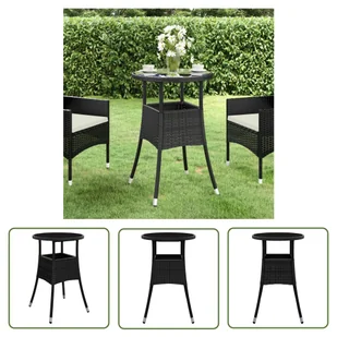 Zapewnij odpowiednią cyrkulację powietrza, aby zapobiec uszkodzeniom spowodowanym wilgocią. Kolor: CzarnyMateriał: Poli rattan, stal malowana proszkowo, szkło hartowaneWymiary: 60 x 75 cm (średnica x wys.)Grubość szkła: 5 mmZ gumą ochronną na szkłoWymagany montaż: