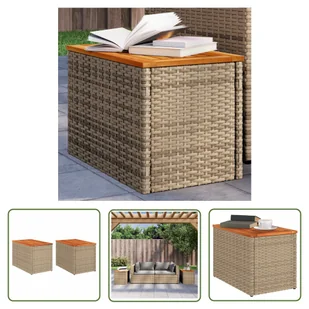 Stoliki ogrodowe 2 szt. Beżowy 55x34x37 cm drewno polirattanoweCiesz się kawą lub rozmawiaj z rodziną lub przyjaciółmi w ogrodzie, na podwórku lub na patio przy tym wszechstronnym stoliku ogrodowym!Trwały materiał: rattan PE, znany również jako polirattan, to wytrzymały, łatwy w pielęgnacji materiał syntetyczny o wyglądzie naturalnego rattanu. Charakteryzuje się niską wagą i jest łatwy w czyszczeniu. Ze względu na swoją trwałość i odporność na warunki atmosferyczne jest często wykorzystywany do produkcji mebli ogrodowych.