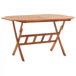 Stół jadalniany na zewnątrz wykonano z litego drewna akacjowego, czyli odpornego na warunki pogodowe i niezwykle trwałego, tropikalnego drewna liściastego. Pośrodku znajduje się otwór na parasol. Nieużywany stół bistro można złożyć, by zaoszczędzić nieco miejsca. Mebel wymaga montażu.