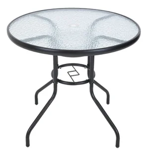 Okrągły metalowy stolik ze szklanym blatem (5mm).