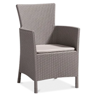 komplet składa się z fotela ogrodowego w kolorze cappucino i dołączonej do niego 4 cm grubości poduszki na siedzisko w kolorze piaskowym