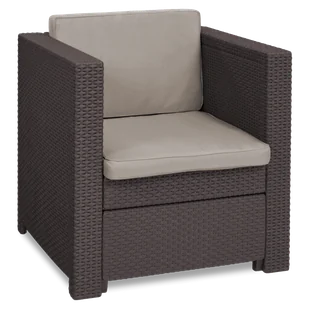Bardzo wygodne fotele ogrodowe Allibert Provence będą zawsze pod ręką, siedząc z rodziną lub przyjaciółmi na balkonie lub tarasie. Plastikowe krzesło ogrodowe w imitacji ratanu okazuje się być bardzo wytrzymałe i odporne na warunki atmosferyczne. Z pewnością docenisz wyściółkę w miękkich poduszkach w szaro-beżowym kolorze. Zaletą jest także łatwa konserwacja i czyszczenie. Możesz także połączyć fotel z innymi produktami Provence.