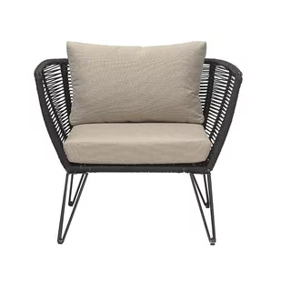 Fotel metalowy czarny Mundo firmy Bloomingville nbsp; jest przykładem nowoczesnego duńskiego designu przywodzącego na myśl klimat loftów Metalowa struktura stworzona ze ściśle ułożonych prętów kojarzy się z projektami wybitnego designera Nilsa Strinninga którego metalowe półki stały się kultowe Fotel posiada finezyjnie wygięte nóżki co przybliża ich design do Biedemeiera w nowoczesnej odsłonie z użyciem metalu Beżowe poduszki i siedzisko wpisują się w tradycyjny skandynawski charakter aranżacji Długość sofy 175 cm wysokość 72 cm głębokość 74 cm nbsp;Fotel możesz zestawić z sofa Sofa jest z tej samej kolekcji Długość sofy 87 cm wysokość 72 cm głębokość 74 cm Struktura fotela imituje rattan a czarny kolor przywodzi na myśl barwę odmiany bzu która kojarzy się z nordycką boginią miłości Freyą Beżowa poduszka oparcia i siedziska rozświetla design fotela