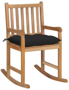 Materiał: naturalne, lite drewno tekowe, materiał poduszki: tkanina Contex Plus 7S. Kolor fotela: Brązowy, kolor poduszki: czarny. Szukasz innego fotela bujanego? Kliknij w link i sprawdź f otele bujane w sklepie Edinos.