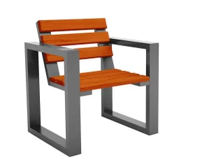 83 cm - Wysokość siedziska: 45 cm - Szerokość listwy: 8 cm, Grubość listwy: 2,6 cm - Profil fotela: 8 cm x 4 cm - W ofercie posiadamy także inne meble (ławki, stoliki) z kolekcji .