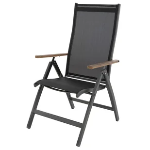 Rozkładany fotel ogrodowy EXPERT WOOD Plus wykonany jest z materiałów niewymagających konserwacji. Stabilna aluminiowa konstrukcja w kolorze antracytowym uzupełniona jest wysokiej jakości tkaniną syntetyczną w kolorze czarnym. 7-stopniowy system regulacji oparcia gwarantuje maksymalny komfort. Całości dopełniają aluminiowe podłokietniki pokryte powłoką proszkową w odcieniu ciemnobrązowego drewna.