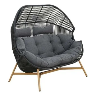 Fotel ogrodowy dla dwóch osób posiada stabilną konstrukcję, dzięki zastosowaniu stalowej ramy. Wpływa to na wytrzymałość mebla i komfort użytkowania doskonale sprawdzi się przez wiele sezonów.