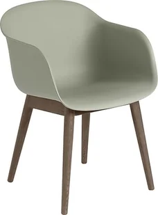Fotel Fiber szarozielony na ciemnych drewnianych nogach