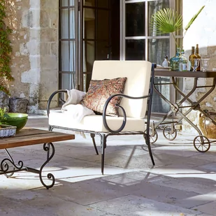 Ponadczasowy klasyk do ogrodu. Niezwykle wytrzymały i całkowicie odporny na warunki atmosferyczne. Dwie trzymające kształt poduszki zapewniają doskonały komfort siedzenia. Idealny fotel wypoczynkowy do ogrodu zachwyca stylowym designem i najwyższym komfortem siedzenia. Rama została wykonana z solidnego żelaza i wytrzymuje obciążenie do 150 kg.