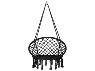 Piękny fotel wiszący boho w kolorze czarnym. Potrzebujesz relaksu na tarasie po długim dniu? W takim razie to czarne wiszące krzesło, ozdobione frędzlami, jest idealnym wyborem! Krzesło składa się z solidnej ramy z plecionym siedziskiem. Kolejną atrakcją jest unikalny wygląd boho produktu, który doda przyjemnej atmosfery do każdej przestrzeni zewnętrznej lub wewnętrznej. Szczegóły: Typ: Fotel wiszący Styl: Boho Kolor: