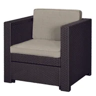 Funkcjonalne krzesło ogrodowe Bali Mono ładnie komponuje się z innymi produktami firmy Keter. Posiada wygodne podłokietniki, dopasowane oparcie i stabilną konstrukcję. Dobrze wygląda w ogrodzie na tarasie i na balkonie. Produkt wykonano z tworzywa sztucznego odpornego na niekorzystne działanie warunków atmosferycznych w tym promieni UV. Oparcie i siedzisko krzesła imituje naturalną plecionkę rattanową. Możliwość sztaplowania (ułożenia w stos) sprawdza się pod czas transportu oraz w czasie przechowywania po sezonie.
