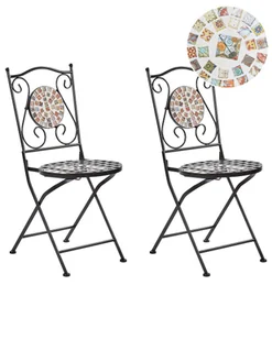 Krzesło ogrodowe Zestaw 2 Metal Czarny CASARIO Wzbogać swoją przestrzeń zewnętrzną odrobiną śródziemnomorskiego uroku dzięki temu wyjątkowemu zestawowi dwóch...