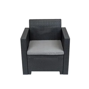Jeśli więc teraz masz miejsce tylko na dwa meble, możesz później rozszerzyć swój zestaw i zamienić swój ogród lub patio w drugi salon. odporny na warunki atmosferyczne zero konserwacji łatwe czyszczenie Ochrona przed promieniowaniem UV Estetyczne krzesło ogrodowe z tworzywa sztucznego Powierzchnia przypominająca prawdziwy rattan sprawia, że każda przestrzeń staje się przytulna, nie tylko praktyczna, ale i dekoracyjna. Nowoczesny i elegancki, ale także świetnie wygląda w klasycznych przestrzeniach, tworzywo sztuczne z efektem wikliny do złudzenia przypomina rattan. Fotel jest również wyposażony w dekoracyjną poduszkę, która nie tylko podnosi poziom komfortu, ale także wygląd. Fotel ogrodowy Nero to dobry wybór, jeśli szukasz estetycznie wyglądających mebli do ogrodu lub na taras.