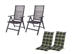 Livarno home Zestaw 2 aluminiowych foteli ogrodowych Miami z siedziskiem i oparciem z plecionki z 2 poduszkami na krzesło Aluminiowy fotel ogrodowy Miami z siedziskiem i oparciem z plecionki, 2 sztuki, antracyt Livarno home Alu-Leżak z wysokim oparciem »Miami« , 2 sztuki, pleciony, antracytowy Opis produktu Odporny na warunki atmosferyczne i promieniowanie UV Malowana proszkowo aluminiowa rama Siedzisko i oparcie z linki PE Nóżki z osłonkami Oparcie regulowane w 7 pozycjach za pomocą podłokietników Sztaplowane Maks. obciążenie krzesła: 120 kg 2 sztuki Parametry produktu table{width:100%;}td{padding-right: 30px; padding: 0.5rem; border-bottom: 0.0625rem solid #e3e4e5;} tr: nth-child(odd) {background-color: #F2F3F4;} Seria: Miami Funkcja: