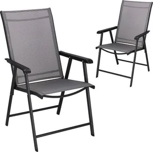Springos Krzesła ogrodowe, metalowe na balkon, zestaw 2 krzeseł na taras składane czarno-szare UNIWERSALNY