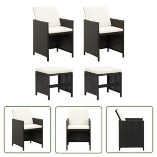 Ten 4-częściowy zestaw krzeseł i stołków ogrodowych jest idealnym dodatkiem do ogrodu, patio lub salonu na świeżym powietrzu. Solidna stalowa rama jest owinięta odpornym na warunki atmosferyczne rattanem PE. Ogrodowy zestaw krzeseł i stołków jest odporny na rdzę i pleśń oraz zapewnia lata wysokiej jakości relaksu. Krzesło tarasowe jest wyposażone w oparcie i podłokietniki dla maksymalnego komfortu. Dołączona poduszka na siedzisko i oparcie zapewnia dodatkowy komfort siedzenia.