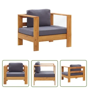 Kolor tapicerki: ciemnoszaryMateriał: lite drewno akacjowe o wyglądzie drewna tekowego, tkanina (100% poliester)Wymiary: 80 x 65 x 60 cm (szer. x gł. x wys.)Grubość poduszki: 10 cmPoduszka oparcia: