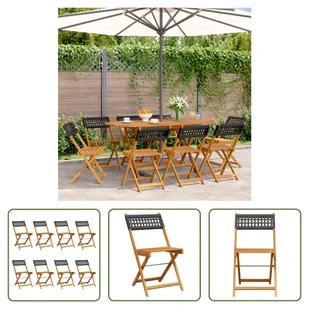 Krzesła ogrodowe 8 szt. Składany czarny polirattan i lite drewnoZrelaksuj się i ciesz się wypoczynkiem na świeżym powietrzu na tych wygodnych, składanych krzesłach ogrodowych!Solidne i stabilne: lite drewno akacjowe jest znane ze swojej wytrzymałości i trwałości. Jego zróżnicowany kolor i unikalne usłojenie nadają mu atrakcyjny wygląd. Dzięki doskonałej stabilności i odporności na warunki atmosferyczne idealnie nadaje się do produkcji mebli wewnętrznych i zewnętrznych.