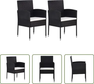 Krzesła ogrodowe z poduszkami kremowo-białe 2 szt. czarny polirattanTe krzesła ogrodowe z polirattanu są doskonałym wyborem do spożywania posiłków lub relaksu. Wytrzymały materiał: rattan PE, znany również jako polirattan, to wytrzymały, łatwy w pielęgnacji materiał syntetyczny o wyglądzie naturalnego rattanu. Charakteryzuje się niską wagą i jest łatwy w czyszczeniu.
