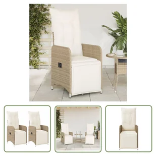 Fotel ogrodowy z poduszką 2 szt. Regulowany beżowy polirattanZrelaksuj się i ciesz się wypoczynkiem na świeżym powietrzu w tych wygodnych fotelach ogrodowych!Trwały materiał: rattan PE, znany również jako polirattan, to wytrzymały, łatwy w pielęgnacji materiał syntetyczny o wyglądzie naturalnego rattanu. Charakteryzuje się niską wagą i jest łatwy w czyszczeniu. Ze względu na swoją trwałość i odporność na warunki atmosferyczne jest często wykorzystywany do produkcji mebli ogrodowych.
