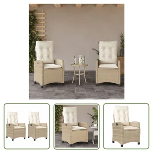 Fotel ogrodowy z poduszką 2 szt. Regulowany beżowy polirattanZrelaksuj się i ciesz się wypoczynkiem na świeżym powietrzu w tych wygodnych fotelach ogrodowych!Trwały materiał: rattan PE, znany również jako polirattan, to wytrzymały, łatwy w pielęgnacji materiał syntetyczny o wyglądzie naturalnego rattanu. Charakteryzuje się niską wagą i jest łatwy w czyszczeniu. Ze względu na swoją trwałość i odporność na warunki atmosferyczne jest często wykorzystywany do produkcji mebli ogrodowych.