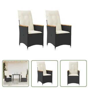 Fotel ogrodowy z poduszką 2 szt. Regulowany czarny polirattanZrelaksuj się i ciesz się wypoczynkiem na świeżym powietrzu w tych wygodnych fotelach ogrodowych!Wytrzymały materiał: rattan PE, znany również jako polirattan, to wytrzymały, łatwy w pielęgnacji materiał syntetyczny o wyglądzie naturalnego rattanu. Charakteryzuje się niską wagą i jest łatwy w czyszczeniu. Ze względu na swoją trwałość i odporność na warunki atmosferyczne jest często wykorzystywany do produkcji mebli ogrodowych.
