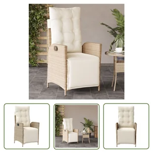Krzesło ogrodowe z regulowanym podnóżkiem Beżowy polirattanZrelaksuj się i ciesz się wypoczynkiem na świeżym powietrzu w tym wygodnym fotelu ogrodowym!Wytrzymały materiał: rattan PE, znany również jako polirattan, to wytrzymały, łatwy w pielęgnacji materiał syntetyczny o wyglądzie naturalnego rattanu. Charakteryzuje się niską wagą i jest łatwy w czyszczeniu. Ze względu na swoją trwałość i odporność na warunki atmosferyczne jest często wykorzystywany do produkcji mebli ogrodowych. Regulowane oparcie i podnóżek: