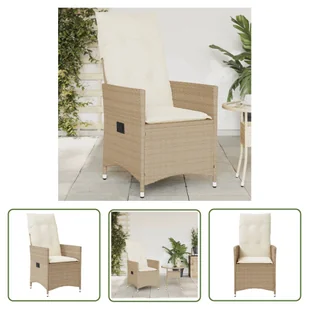 Krzesło ogrodowe z poduszką regulowane beżowe z polirattanuZrelaksuj się i ciesz się wypoczynkiem na świeżym powietrzu w tym wygodnym fotelu ogrodowym!Wytrzymały materiał: rattan PE, znany również jako polirattan, to wytrzymały, łatwy w pielęgnacji materiał syntetyczny o wyglądzie naturalnego rattanu. Charakteryzuje się niską wagą i jest łatwy w czyszczeniu. Ze względu na swoją trwałość i odporność na warunki atmosferyczne jest często wykorzystywany do produkcji mebli ogrodowych. Regulowane oparcie:
