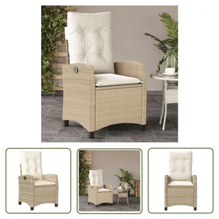 Krzesło ogrodowe z poduszką regulowane beżowe z polirattanuZrelaksuj się i ciesz się wypoczynkiem na świeżym powietrzu w tym wygodnym fotelu ogrodowym!Wytrzymały materiał: rattan PE, znany również jako polirattan, to wytrzymały, łatwy w pielęgnacji materiał syntetyczny o wyglądzie naturalnego rattanu. Charakteryzuje się niską wagą i jest łatwy w czyszczeniu. Ze względu na swoją trwałość i odporność na warunki atmosferyczne jest często wykorzystywany do produkcji mebli ogrodowych. Regulowane oparcie: