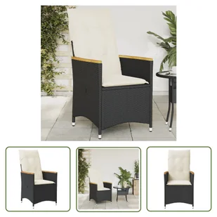 Rozkładany fotel ogrodowy z poduszkami, czarny polirattan Zrelaksuj się i ciesz się czasem na świeżym powietrzu dzięki temu wygodnemu krzesłu ogrodowemu! Wyt...