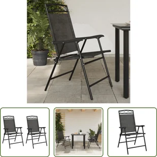 Składane krzesła ogrodowe 2 szt. Szara stal i textileneTe krzesła ogrodowe mają elegancki wygląd, dzięki czemu są doskonałym wyborem do spożywania posiłków w ogrodzie lub na patio. Wytrzymałe i trwałe: Tkanina jest ceniona za swoją trwałość, wodoodporność, odporność na światło i łatwość konserwacji, oferuje doskonałą ochronę przed promieniami UV i jest odporna na pleśń, co czyni ją idealnym wyborem do mebli ogrodowych i zacienionych miejsc. Wytrzymałość i stabilność: