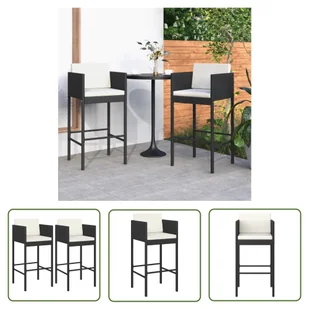 Kolor: czarnyMateriał: polirattan, stal malowana proszkowoWymiary: 50 x 48 x 100 cm (szer. x gł. x wys.)Wysokość siedziska od podłogi: 76 cmWymiary poduszki siedziska: 45 x 44 x 3 cm (szer. x gł. x wys.)Wymiary poduszki oparcia: