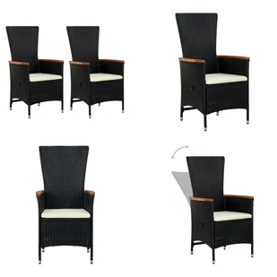 Krzesła ogrodowe 2 szt. z poduszkami z czarnego polirattanuNasz stylowy fotel z polirattanu będzie przyciągał wzrok w ogrodzie lub na patio!Wykonany z wodoodpornego rattanu PE fotel jest łatwy w pielęgnacji, wytrzymały i nadaje się do codziennego użytku. Malowane proszkowo stalowe ramy sprawiają, że krzesła są stabilne i trwałe. Leżaki zapewniają komfort, jakiego potrzebujesz. Oparcie można regulować, pociągając za pokrętło z boku.