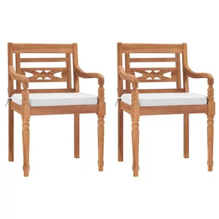 Wykończenie krzeseł olejem nadaje drewnu ciepły kolor. W skład przesyłki wchodzą 2 krzesła Batavia i 2 poduszki. Meble są łatwe w montażu.