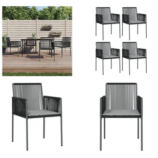Krzesła ogrodowe z poduszką 4 szt. czarne 54x60,5x83,5 cmTe stylowe krzesła ogrodowe są doskonałym dodatkiem do ogrodu lub patio i pozostawią niezatarte wrażenie!Trwały materiał: rattan PE, znany również jako polirattan, jest odporny na warunki atmosferyczne i łatwy w pielęgnacji. Jego powierzchnia zachowuje atrakcyjny wygląd przez długi czas. Oferuje wysoką jakość, komfort i estetyczny wygląd.