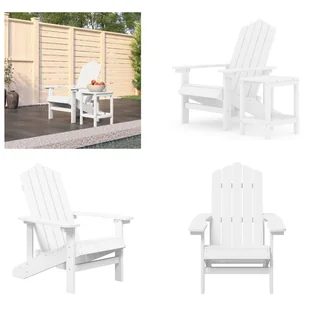 Krzesło ogrodowe Adirondack ze stołem HDPE białeKrzesło ogrodowe Adirondack ze stolikiem to praktyczny i elegancki dodatek do ogrodu, patio lub tarasu. Pierwszorzędny materiał: Krzesło tarasowe jest wykonane z odpornego na warunki atmosferyczne i promieniowanie UV HDPE (polietylenu o wysokiej gęstości). Materiał ten nie ma wad litego drewna, które łatwo gnije i pęka, zwłaszcza w deszczowe dni. Łatwa pielęgnacja: