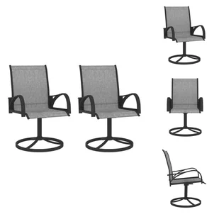 Dzięki tym 2 obrotowym krzesłom ogrodowym możesz cieszyć się doskonałym obiadem lub popołudniową kawą we własnej przestrzeni na świeżym powietrzu! Krzesła te są wykonane z malowanych proszkowo stalowych ram, dzięki czemu są odporne na rdzę i warunki atmosferyczne. Oddychająca tkanina Textilene zapewnia dobrą wentylację i jest szybkoschnąca. Okrągła podstawa obracająca się o 360 stopni, wraz z ergonomicznym oparciem i zakrzywionymi podłokietnikami, zapewnia lepsze wrażenia użytkownika i maksymalny komfort. Kolor: szaryMateriał: tkanina, stal malowana proszkowoWymiary: