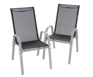 Zestaw 2 krzeseł ogrodowych kempingowe czarne stelaż szary Krzesło sztaplowane z wysokie oparcie wykonane z podwójnie malowanej proszkowo stalowej ramy idealnie nadaje się do użytku wewnątrz i na zewnątrz. Siedzisko i oparcie krzesła wykonane są z czarnego, elastycznego pokrycia Textilene. Krzesło ma podłokietniki po prawej i lewej stronie, co zapewnia relaksujące siedzenie. Kilka krzeseł można łatwo ustawiać jeden na drugim, aby zaoszczędzić miejsce, gdy nie są używane. Materiały użyte w tym krześle są bezobsługowe, odporne na warunki atmosferyczne i nie wymagają specjalnych środków pielęgnacyjnych.