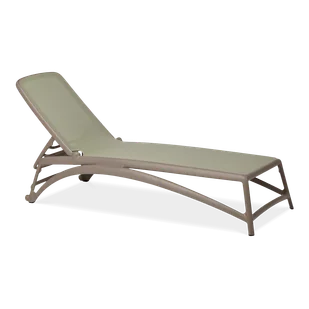Leżak Nardi ATLANTICO Tortora Agave - Leżak ogrodowy Atlantico Tortora Agave jest topowym modelem leżaka włoskiej marki premium Nardi. Wiedza producenta i absolutnie najlepsze tworzywa pomogły wyprodukować leżak godny marki premium. Konstrukcja leżaka jest zbudowana na zasadzie monobloku (jednolity, stały element) wykonanego ze 100% polipropylenu, który dodatkowo wzmocniono włóknem szklanym. Oparcie i siedzisko, podobnie jak w modelu Alfa wykończono wygodną i wytrzymałą, oddychającą tkaniną Textilene. Materiał ten jest bardzo często wykorzystywany w meblach ogrodowo-basenowych i razem z polipropylenem jest w pełni odporny na słońce, deszcz, mróz, śnieg i UV.