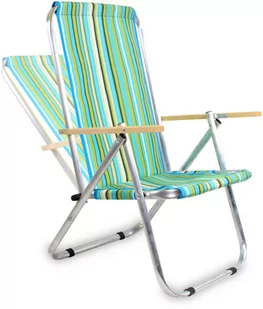 Dzięki dwóm funkcjom – leżaka oraz krzesła – oferowane rozwiązanie jest bardzo uniwersalne i spełni oczekiwania użytkowników posiadających różne potrzeby. Będzie idealny zarówno do relaksu na plaży, jak i w ogrodzie, na tarasie czy balkonie. Wygodne poszycie i zastosowanie podłokietników sprawia, że nie wywołuje dyskomfortu nawet po kilku godzinach użytkowania. Dane techniczne : długość oparcia - 70 cm szerokość tkaniny - 40 cm szerokość siedziska - 48 cm wysokość siedziska od ziemi 34 cm waga 3,1 kg nośność 150 kg średnica rury stelaża 30 x 20 mm Wymiary po złożeniu :