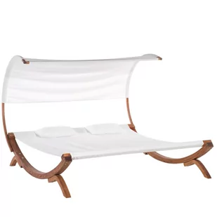 Fantastycznie piękny podwójny leżak wykonany z drewna modrzewiowego z daszkiem przeciwsłonecznym. Solidne, wytrzymałe pokrycie leżaka zapewnia optymalny komfort leżenia i wystarczającą ilość miejsca dla 2 osób. Duży daszek przeciwsłoneczny zapewnia doskonałą ochronę przed silnym światłem słonecznym. Łatwy w pielęgnacji materiał z wytrzymałego poliestru w jasnym, letnim kolorze kremowej bieli doskonale pasuje do solidnej ramy wykonanej z wysokiej jakości drewna modrzewiowego w ciepłym kolorze teak. Stelaż zadaszenia przeciwsłonecznego można zdemontować w kilku prostych krokach.