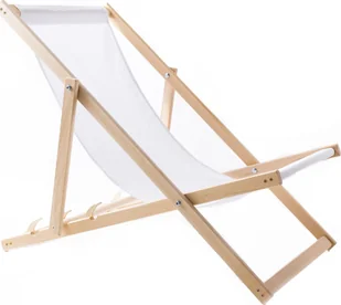 LEŻAK PLAŻOWY OGRODOWY DREWNIANY SKŁADANY WOODOK biała tkanina