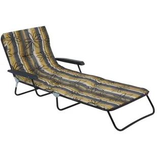 Łóżko ogrodowe Torino z podłokietnikami posiada stelaż 5-pozycyjny z oparciem kwadratowym. Konstrukcja wykonana z rur stalowych, malowanych proszkowo o średnicy 18 cm. Profilowany zagłówek w górnej części materaca. Wierzch poduszki z tkaniny poliestrowo-bawełnianej, spód z polipropylenu. Całość obszyta kolorową lamówką.